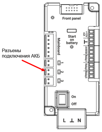 МИП обеспечивает подключение до трех АКБ с номинальным напряжением 12 В и емкостью до 17 А*ч.