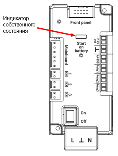 В зависимости от состояния МИП включатся индикаторы Mainboard; +12Vout, ^ ; собственного состояния (смотреть пункт: Подключение к сети 220 В)