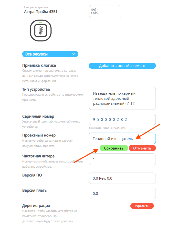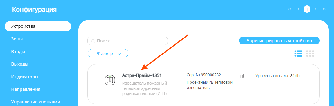 Регистрация и настройка теплового извещателя Астра-Прайм 4351.