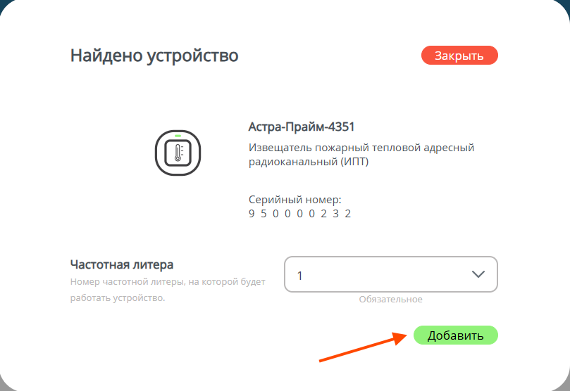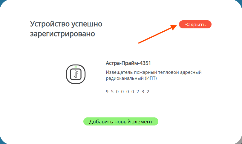 Нажмите "Закрыть". Устройство появится в общем списке устройств.