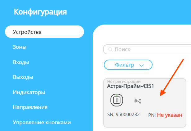 Зайдите во вкладку «Конфигурация» далее вкладка «Устройства» далее «зарегистрировать устройство».