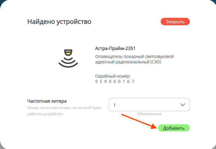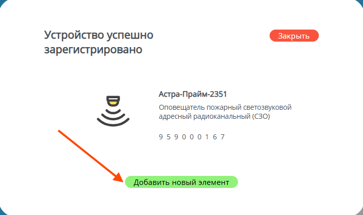 Нажмите "Закрыть". Устройство появится в общем списке устройств.