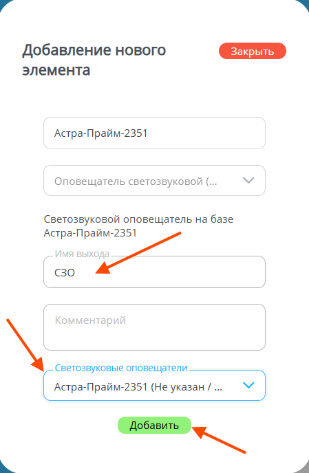Регистрация и настройка свето-звукового оповещателя Астра-Прайм-2351.