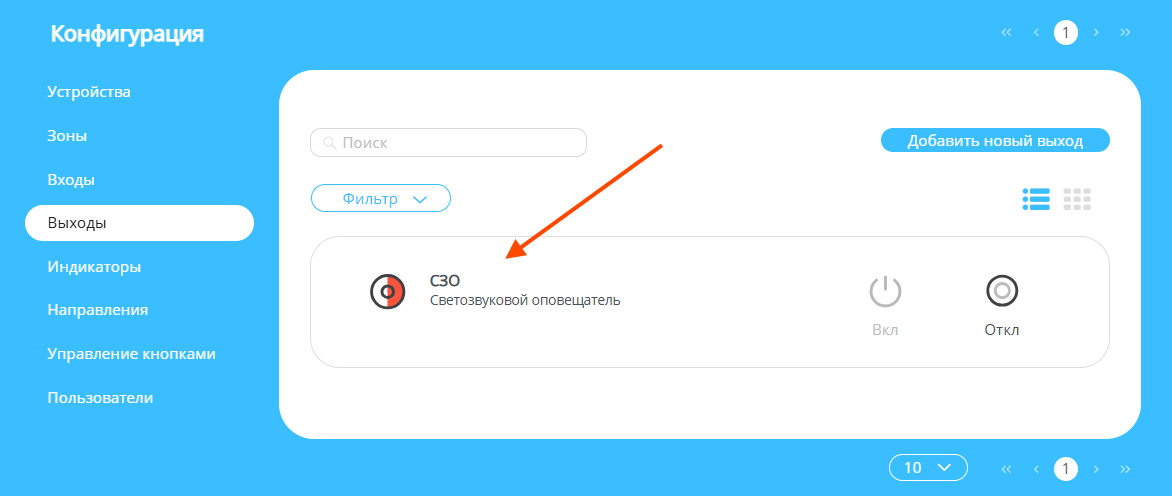 Так будет выглядеть в списке выходов, созданный нами выход.