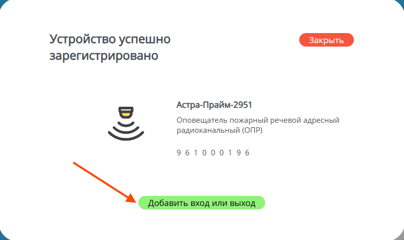 Нажмите "Закрыть". Устройство появится в общем списке устройств.