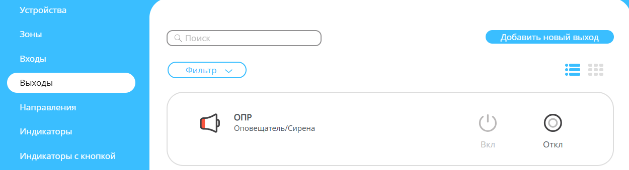 Так будет выглядеть в списке выходов, созданный нами выход.