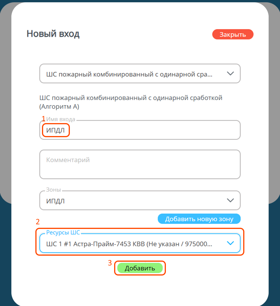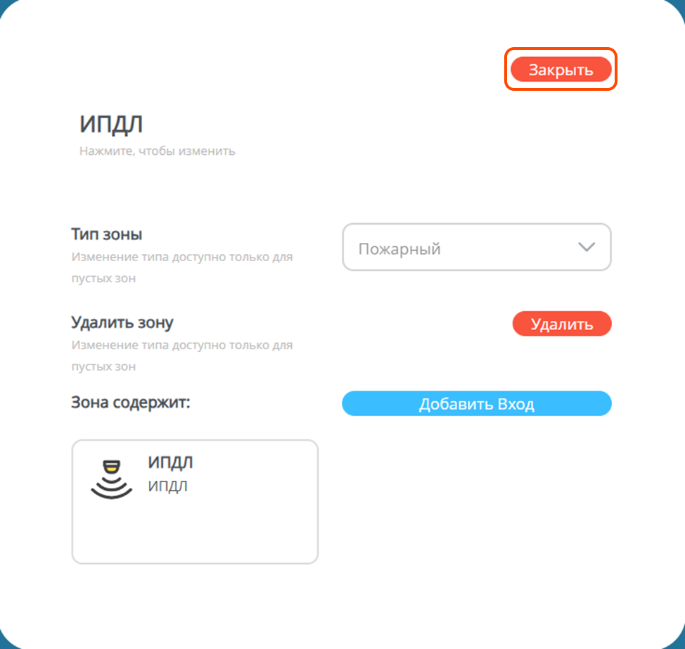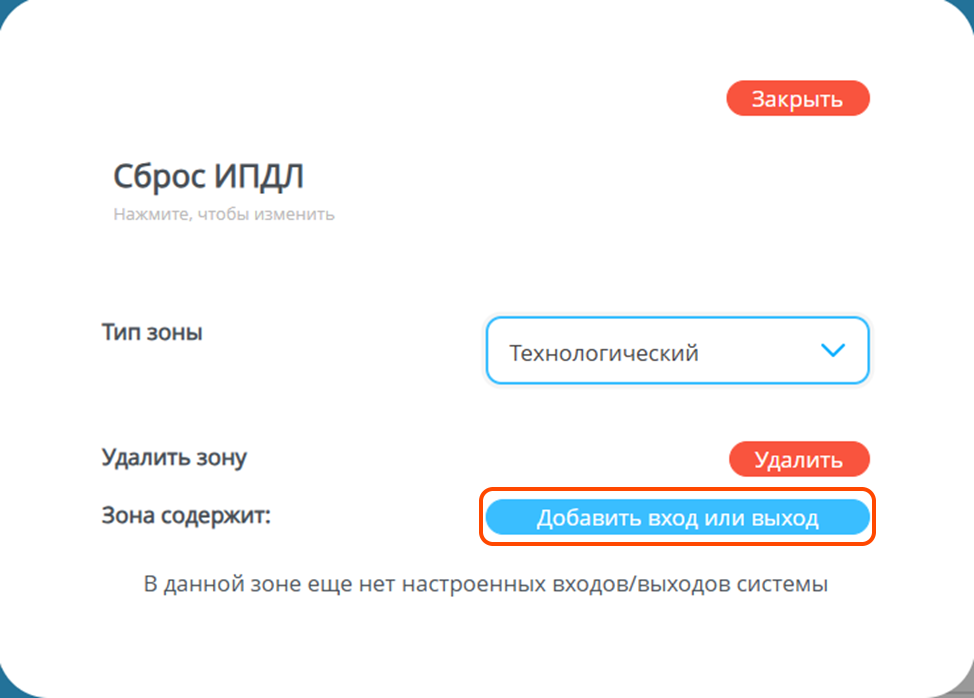 Так выглядит зона с добавленным в нее входом ИПДЛ.