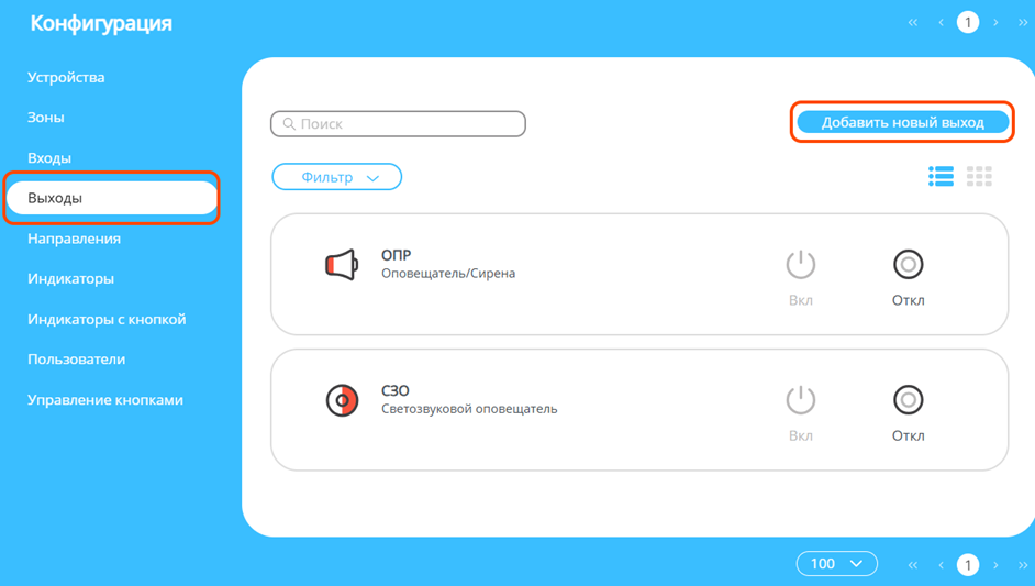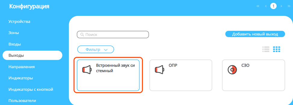 Откройте вкладку «Конфигурация» далее вкладка «Выходы» далее вкладка «Добавить новый выход».