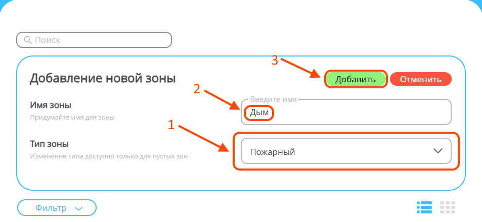 Данный способ подходит, если Вы пропустили пункт создания зоны при регистрации извещателя.
