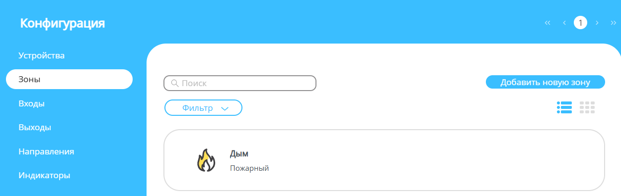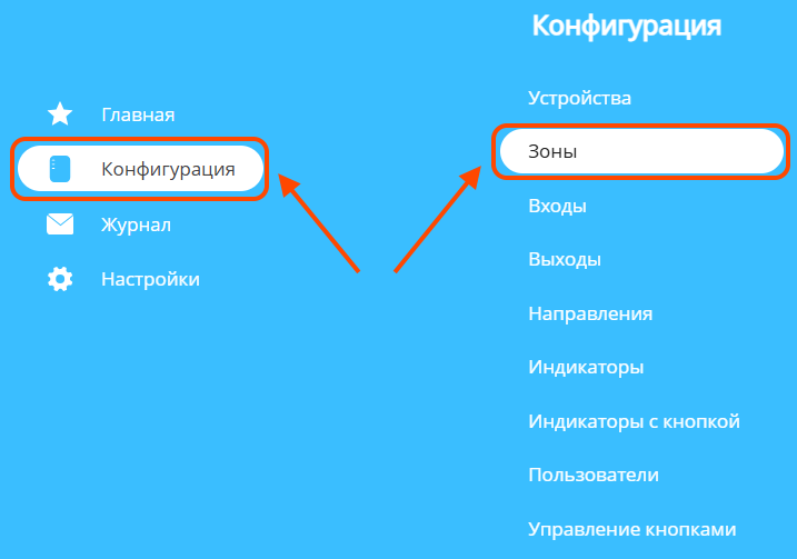 Для создания пожарной зоны зайдите во вкладку "Конфигурация" далее вкладка "Зоны".