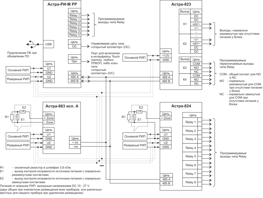 Схема проводных соединений для радиорасширителя Астра-РИ-М РР в автономном режиме работы